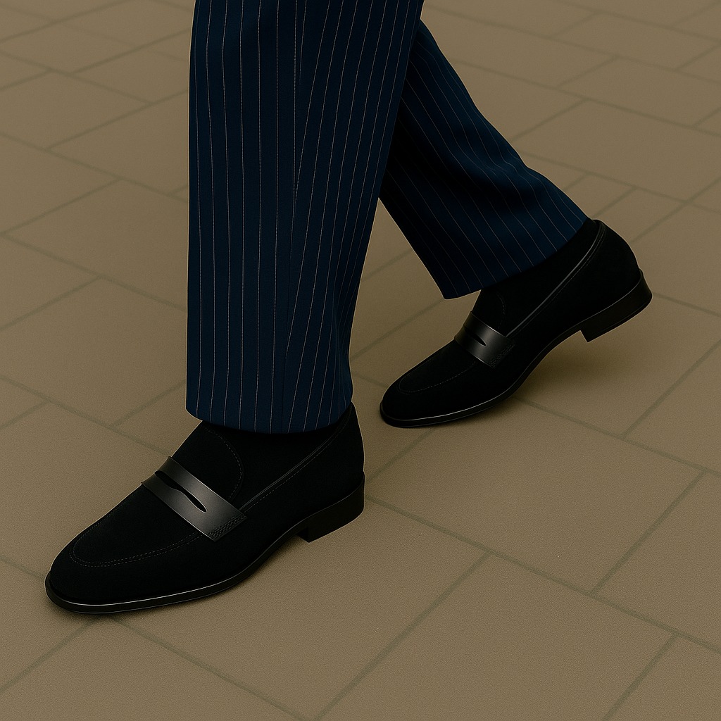 The Shoe Flux Black Suede Loafers are the perfect choice for men seeking comfort and sophistication in one. Featuring a smooth suede finish, stylish leather strap, and cushioned insole, these loafers offer versatility for any occasion. Whether paired with jeans, chinos, or formal trousers, they enhance your look with effortless elegance.