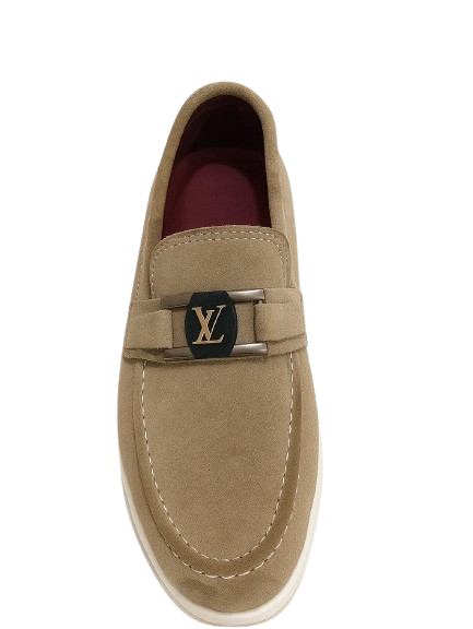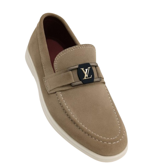Experience modern elegance with the Shoe Flux LV Signature Suede Loafer. Crafted from premium taupe suede, this loafer combines luxury and comfort in a timeless design. The standout LV-inspired buckle detail adds sophistication, while the soft burgundy lining ensures a refined finish. The lightweight white sole provides superior comfort, making it ideal for all-day wear.